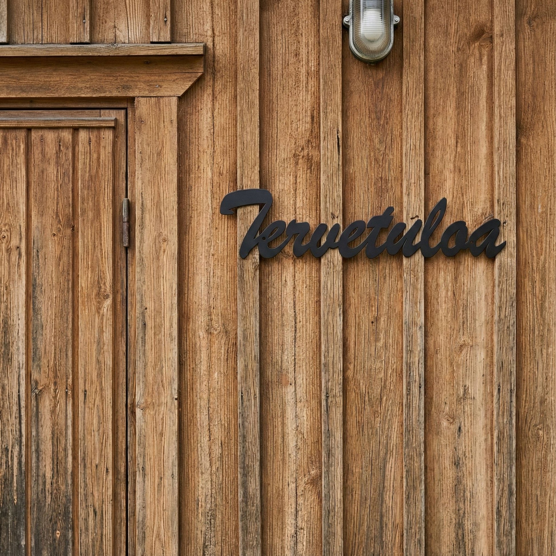 Voit valita valmiista vaihtoehdoista Tervetuloa, Välkommen tai Welcome. Näin saat helposti yksilöllisen yksityiskohdan, joka sopii niin kotiin, mökille kuin työtilaan.