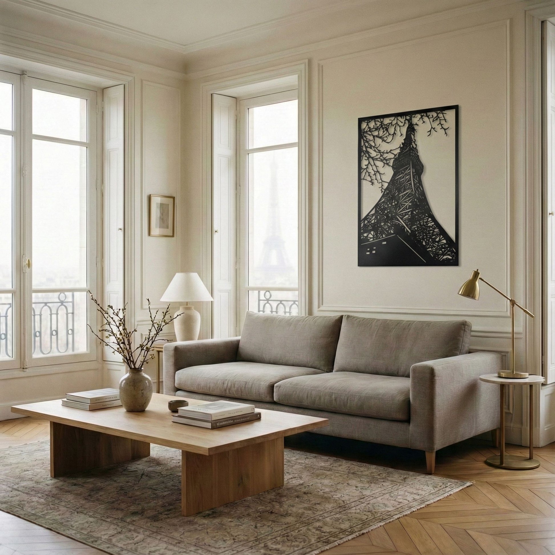 Metallinen Eiffel-taulu on tyylikäs, kestävä ja ajaton sisustuselementti, joka tuo Pariisin ikonisen siluetin osaksi kotiasi. Teos valmistetaan 100 % Suomessa tarkalla laserleikkauksella, mikä takaa siistin pinnan ja selkeän yksityiskohtaisuuden. Minimalistinen muotokieli sopii skandinaaviseen sisustukseen, olohuoneesta makuuhuoneeseen ja työtiloihin.
